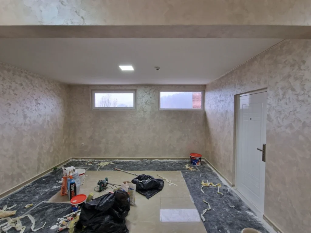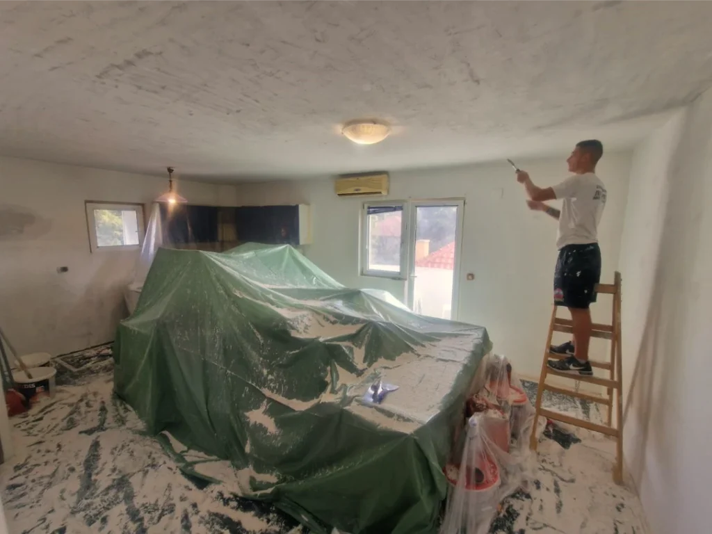 - Kompletna priprema: Uklanjanje svih slojeva boje ili neravnina sa zidova celog stana.